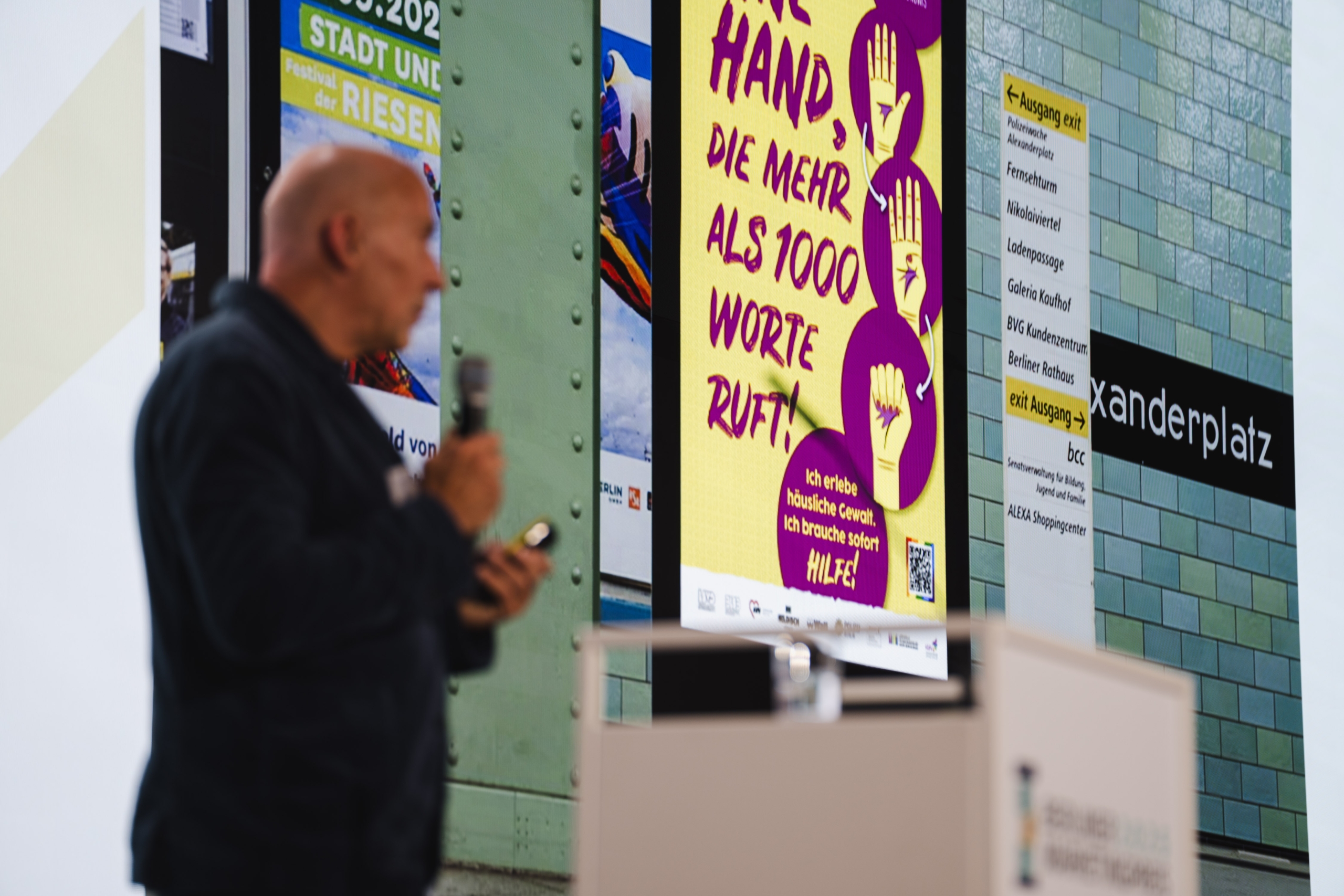 In der zweiten Wettbewerbskategorie, Gemeinwohl, wurden Projekte ausgezeichnet, die Verantwortung sichtbar machen. Heldisch überzeugte erneut – diesmal mit „Signal for Help“ für das Berliner Queere Bündnis. Die Kampagne erklärt eine einfache, aber lebenswichtige Geste: die Handbewegung, mit der Menschen in Not unauffällig um Hilfe bitten können. Das Motiv – eine offene Hand, der Claim „Eine Hand sagt mehr als tausend Worte“ – prangte auf über 4000 Flächen in der Stadt. „Wir wollten Sichtbarkeit für ein stilles Signal schaffen“, sagte Geschäftsführer Jörn Kriebel, „damit Betroffene wissen: Du bist nicht allein.“