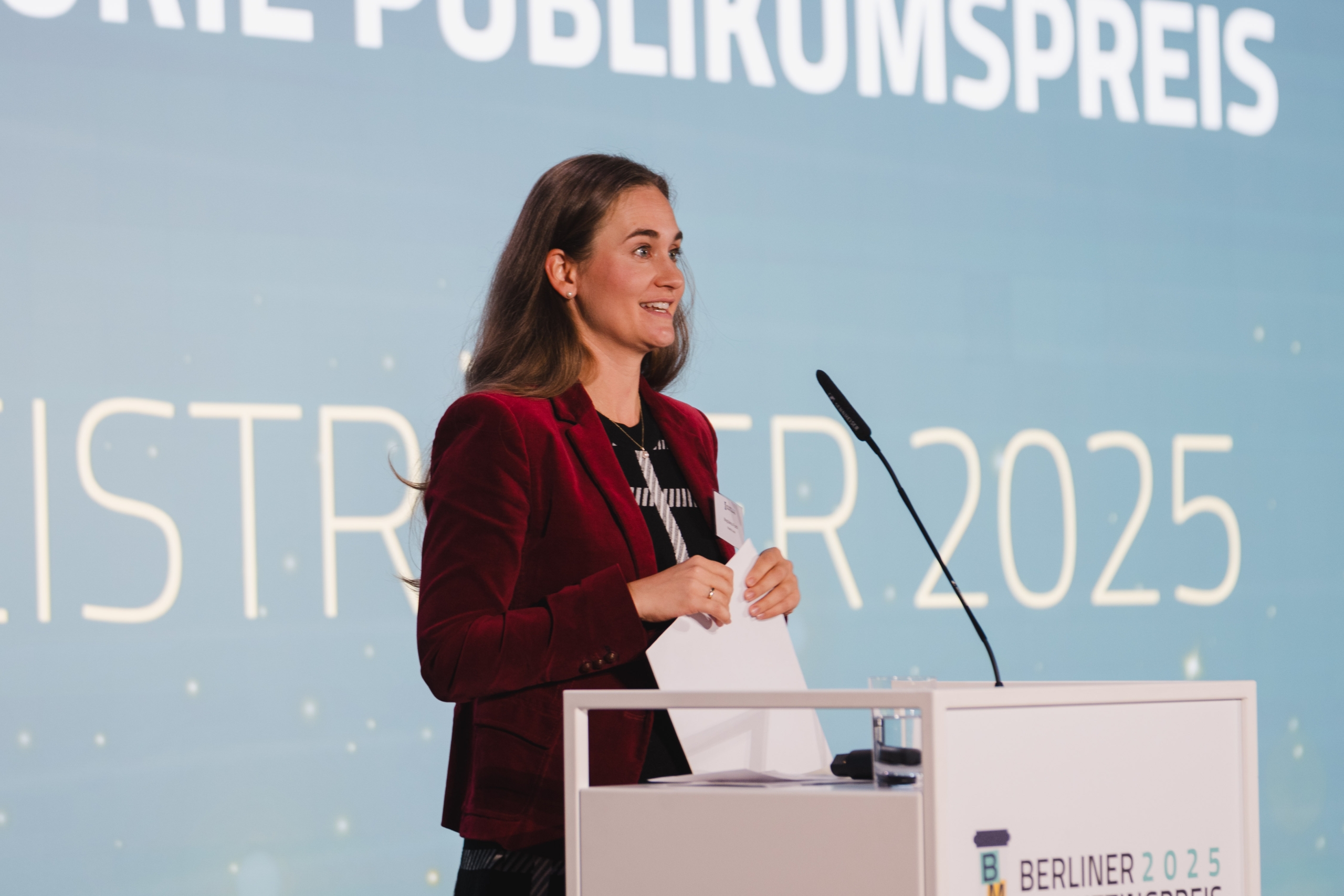 Nach den Präsentationen sprach Myriam Sztayn Aber, Präsidentin des Marketing Clubs Berlin. Sie gab dem Abend den zentralen Gedanken: „Wir feiern Projekte, die nicht nur laut, sondern relevant sind.“ Marketing, so sagte sie, bedeute heute Verantwortung. Kampagnen müssten Haltung zeigen, ohne ihre Leichtigkeit zu verlieren.