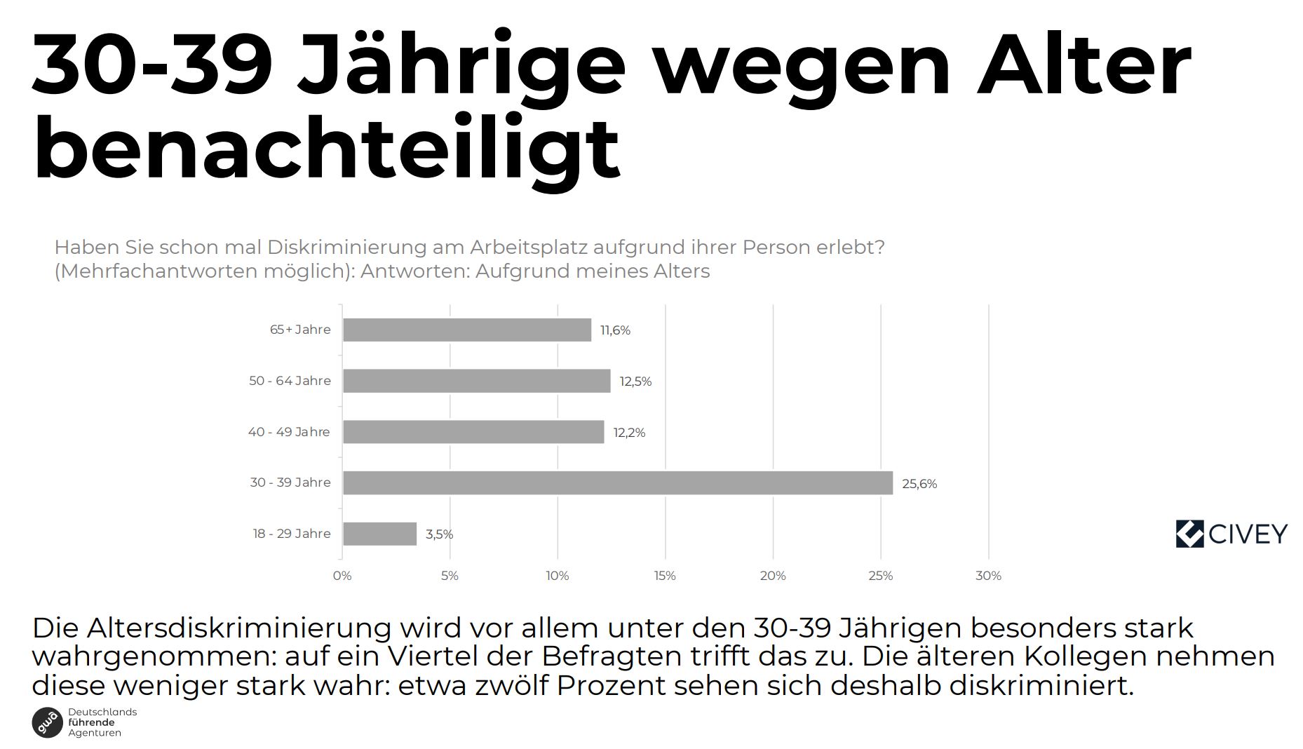 Die Befragung von Civey hat gezeigt, dass Diskriminierung aufgrund des Alters vor allem bei der Altersgruppe von 30 bis 39 wahrgenommen wird. Warum denken Sie, ist diese Altersgruppe besonders betroffen?