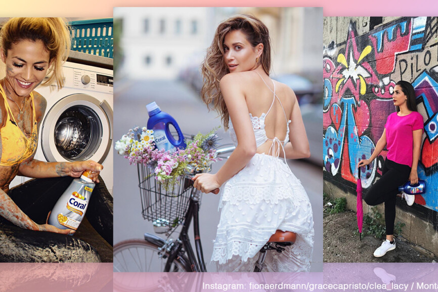 Auf Instagram gibt es unter den Stars und Influencern gerade ein ganz heiß diskutiertes Thema: Wäsche waschen mit Coral. Die Marke aus dem Hause Unilever hat eine neue Kampagne ins Leben gerufen. Dabei zeigen sich ganz schön viele Instagram-Sternchen mit einer Coral-Flasche im Arm: Miyabi Kawai, Freundin von Schauspieler Manuel Cortez, steht ganz stilsicher mit Coffee to go, Clutch und Waschmittel in den Straßen der Hauptstadt. Sebastian Pannek sitzt unterdessen mit seiner Flasche Coral auf dem Boden eines Waschsalons. „Bisher dachte ich immer: Waschmittel gehört irgendwie lieblos verstaut und wird nur zum Waschen rausgeholt. Aber nein. Zumindest Coral muss man ausführen“, kommentiert das Blog Leitmedium den Fall Coral. Alle Werbeanzeigen sind mit dem Hashtag #coralcares und #Coralliebtdeinekleidung versehen. Hier ein paar Beispiele: