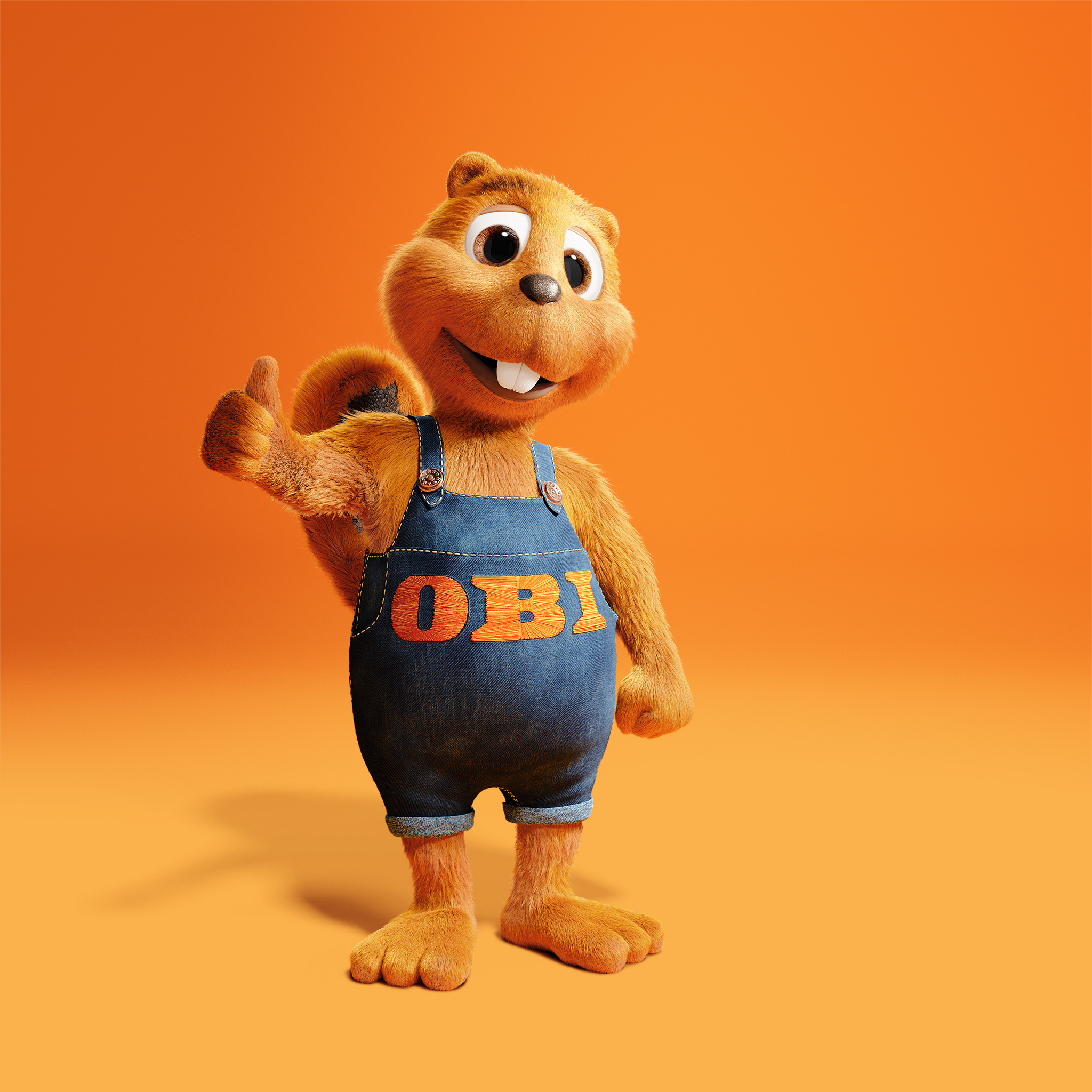 Fast von Anfang an begleitet ein Biber als Werbefigur den deutschen Marktführer. Das war eine Idee von Mitgründer Manfred Maus, die er damit erklärte, dass der Biber ein sympathisches Tier sei, das sein Leben lang baue. „Biberstark“ ist ein beliebtes Adjektiv in der Obi-Werbesprache.