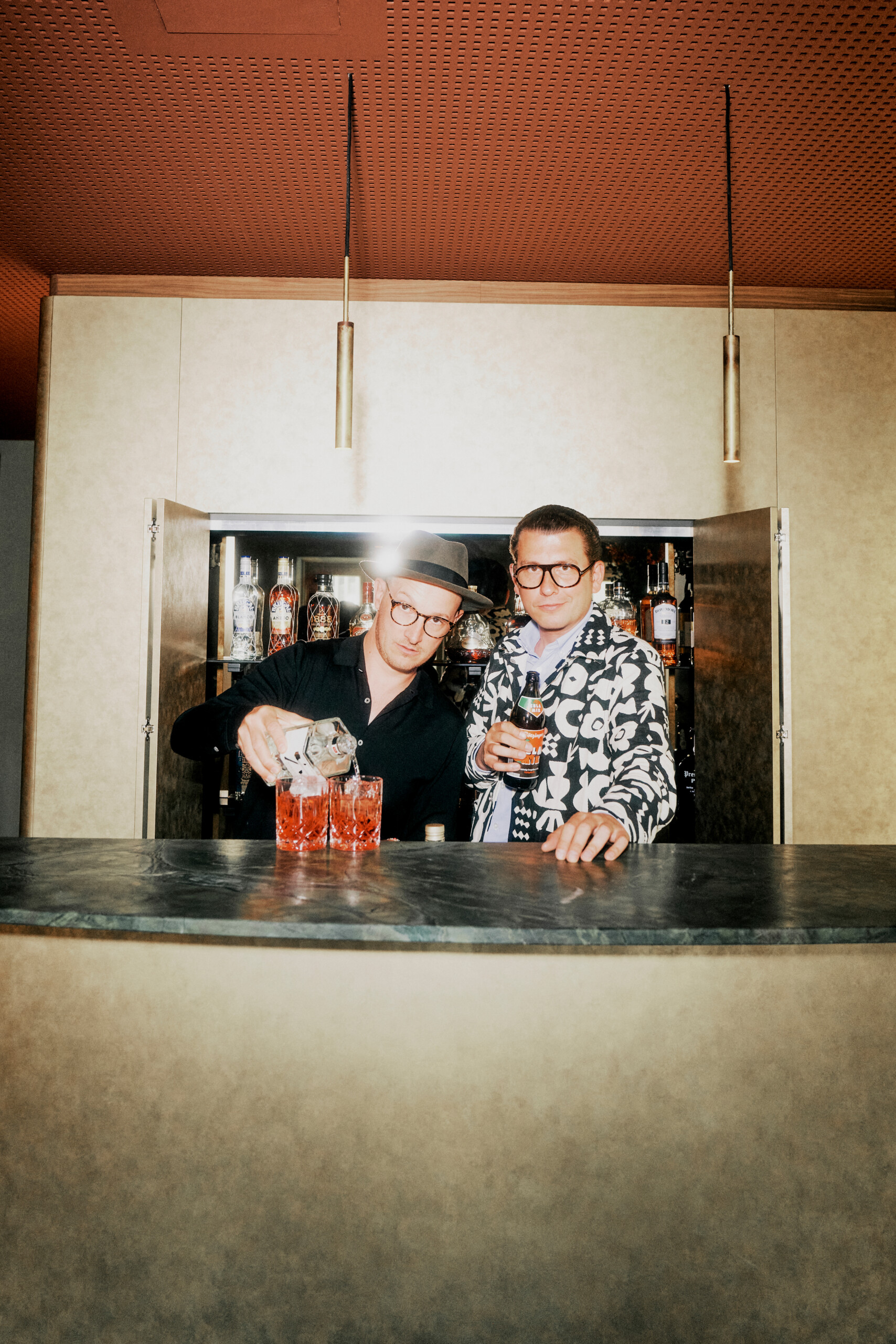 ME: Wir haben beide starke Egos. Der eine will viel verdienen, der andere wenig ausgeben (beide lachen). Zurück zur Frage: Die Grund-DNA der Agentur war über die Bar im Münchner Büro, um die herum alles andere entstanden ist, gesetzt. David (David Stephan, Anm. d. Red.) und ich wollten immer eine Art eigenes kleines Soho House haben und lieber in einer Art Gastronomie arbeiten als in einem typischen Agenturbüro, mit weißen Wänden ohne Bilder, Clean Desk. Wir glauben, dass Agentur mehr Seele braucht.