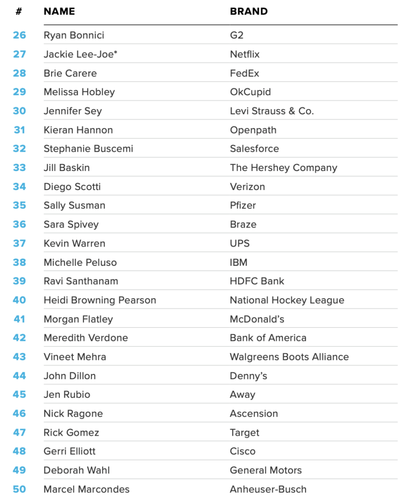- Forbes Most Influential CMOs 2019