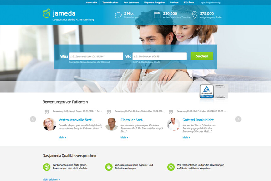 Die Plattform Jemada lebt davon, dass Ärzte für einen Eintrag mit mehr Funktionen – einem Bild und ausführlicher Werbung – einen monatlichen Mitgliedsbeitrag zahlen. Das Portal gehört seit Anfang 2016 zur Burda Digital GmbH.