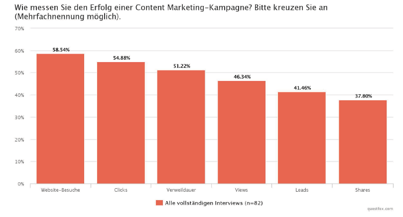 Laut der Studie „Content Marketing und Content Promotion in der DACH-Region“, betreiben nur 44 Prozent der deutschen Unternehmen Content Marketing wirklich intensiv. Erste Ansätze davon haben 38 Prozent bereits implementiert. Dabei bildet Content Marketing einen Gegenpol zu Kampagnen, die ganz klar auf den Abverkauf zielen. Hauptsächlich für Branding setzen 77 Prozent der Befragten Fach- und Führungskräfte in Deutschland, Österreich und der Schweiz Content Marketing ein. Knapp über die Hälfte (56 Prozent) nutzt es für Kundenbindung oder Performance-Kampagnen (54 Prozent). 45 Prozent der Unternehmen dient Content Marketing als Traffic-Treiber, indem es SEO-Aktivitäten unterstützt. Den Erfolg von Content Marketing messen die Betreiber dabei am liebsten in Besuchen und Klicks auf ihre Websites. Als weitere Kennzahlen dienen die Verweildauer, Views, Leads oder Shares.