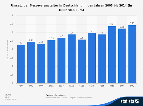 Laut Statistik ist der Umsatz im letzten Jahr wieder deutlich gestiegen. Für viele Messeveranstalter in Deutschland steigt der Umsatz seit 2012 wieder deutlich an.