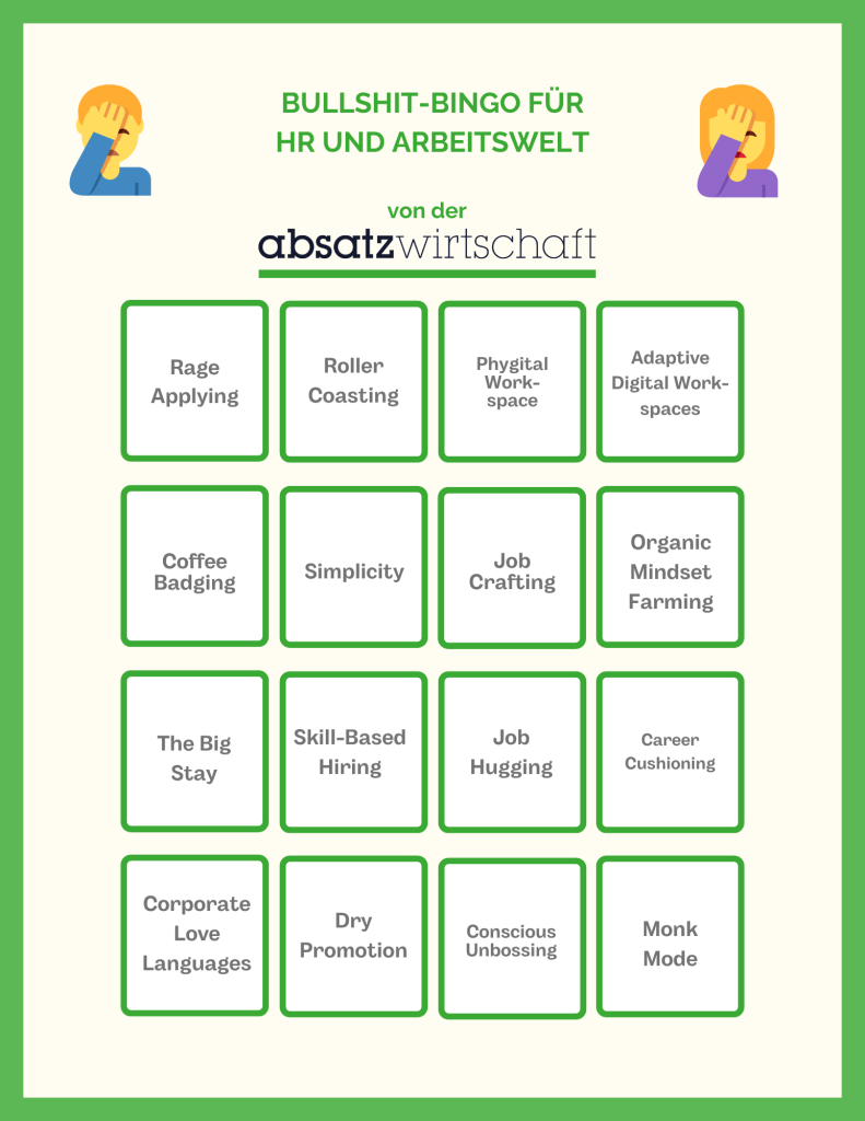 Die Flut an Bullshit-Begriffen in der Arbeitswelt ist schier unendlich. Der Raum dieser Kolumne reicht nicht, um alle zu erklären. Vorschlag zur Güte: Hier findet ihr ein Bullshit-Bingo über die Trendbegriffe der Arbeitswelt 2026. Falls ihr von einem dieser Begriffe mehr wissen wollt: Lasst es mich gerne wissen. Wer es schafft, ein Bingo zu bekommen, der möge sich bei mir melden.