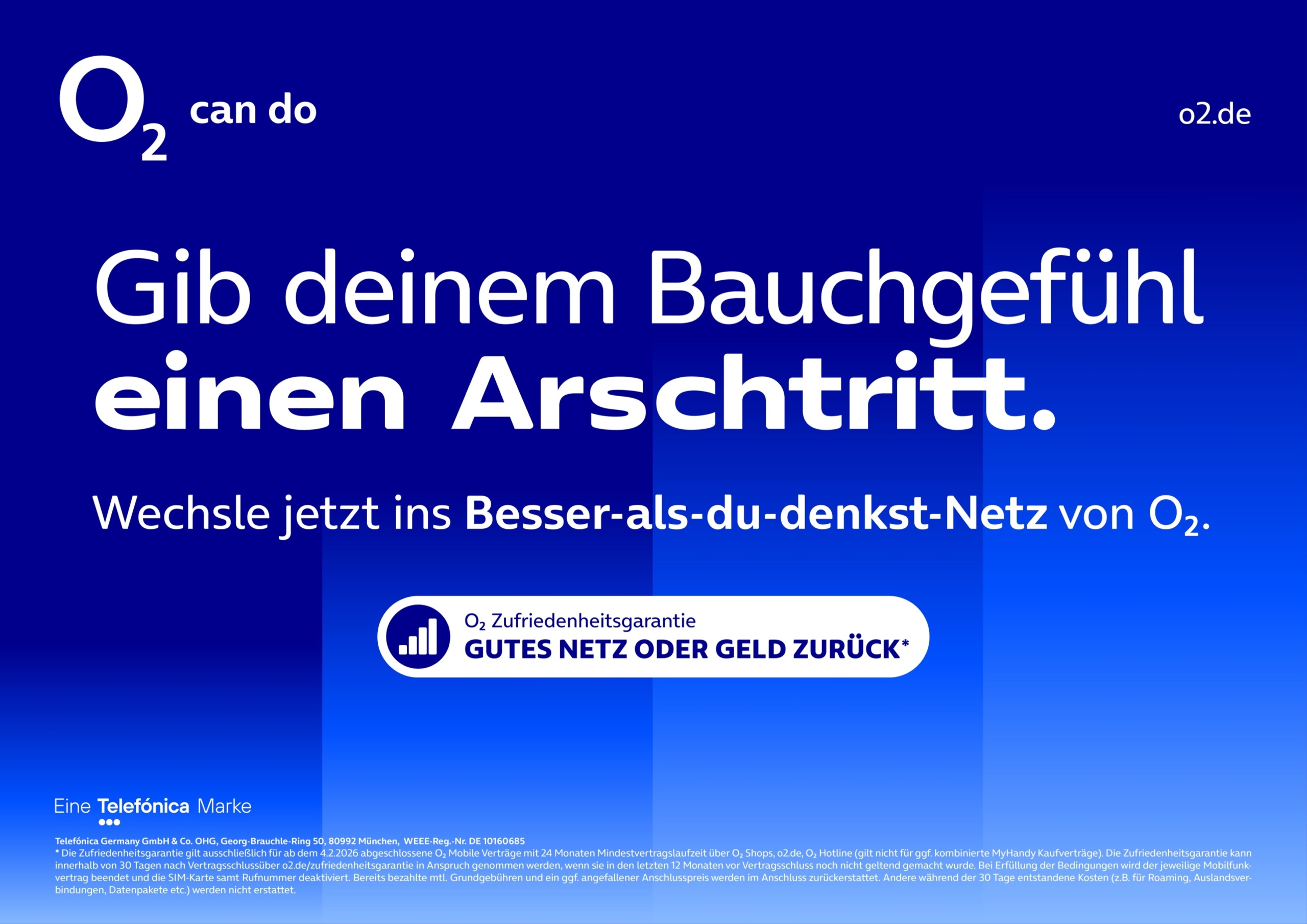 „Um ein gefestigtes negatives Image aufzulösen, benötigt man mehr als vorsichtige Botschaften oder Standardfloskeln. Wir setzen bewusst auf einen Mix aus schonungsloser Ehrlichkeit, einer Prise Humor und modernem Storytelling, um zu zeigen, was längst bewiesen ist: Unser Netz ist deutlich besser als viele denken“, wird Steve Plesker, Director Brand & Marketing Communications bei O2 Telefónica, in der Mitteilung zitiert. Die mutige Herangehensweise unterstreiche das große Selbstbewusstsein von O2 Telefónica gegenüber seinem Netz.„Humor ist für uns niemals Selbstzweck, sondern ein messbar wirksames Mittel für Aufmerksamkeit und Sympathie.“