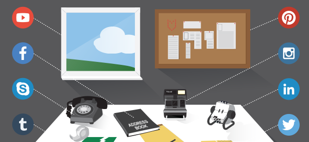 Die Kommunikation via Sozialer Medien ist eine Selbstverständlichkeit geworden. Der Social-Security-Dienstleister Zerofox hat eine Grafik erstellt, die daran erinnert, welche Möglichkeiten wir vor Facebook, Twitter und Pinterest genutzt haben. Eine gewisse Ähnlichkeit zwischen der digitalen und analogen Welt ist unbestreitbar.