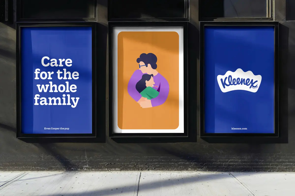 Der Schriftzug in der Krone bleibt nahezu unverändert und orientiert sich an dem Original Handwriting von Design-Großmeister Saul Bass von 1961. Komplettiert wird der Markenauftritt aus der Schmiede der britisch-amerikanischen Agentur Turner Duckworth durch eine ebenso weiche wie zeitgemäße Illustrations-Sprache und eine neue Markenschrift – die Kleenex Serif. Mit dieser Schrift wird der menschlich-lebensnahe Duktus der Marke bis in jede Headline weitergetragen.