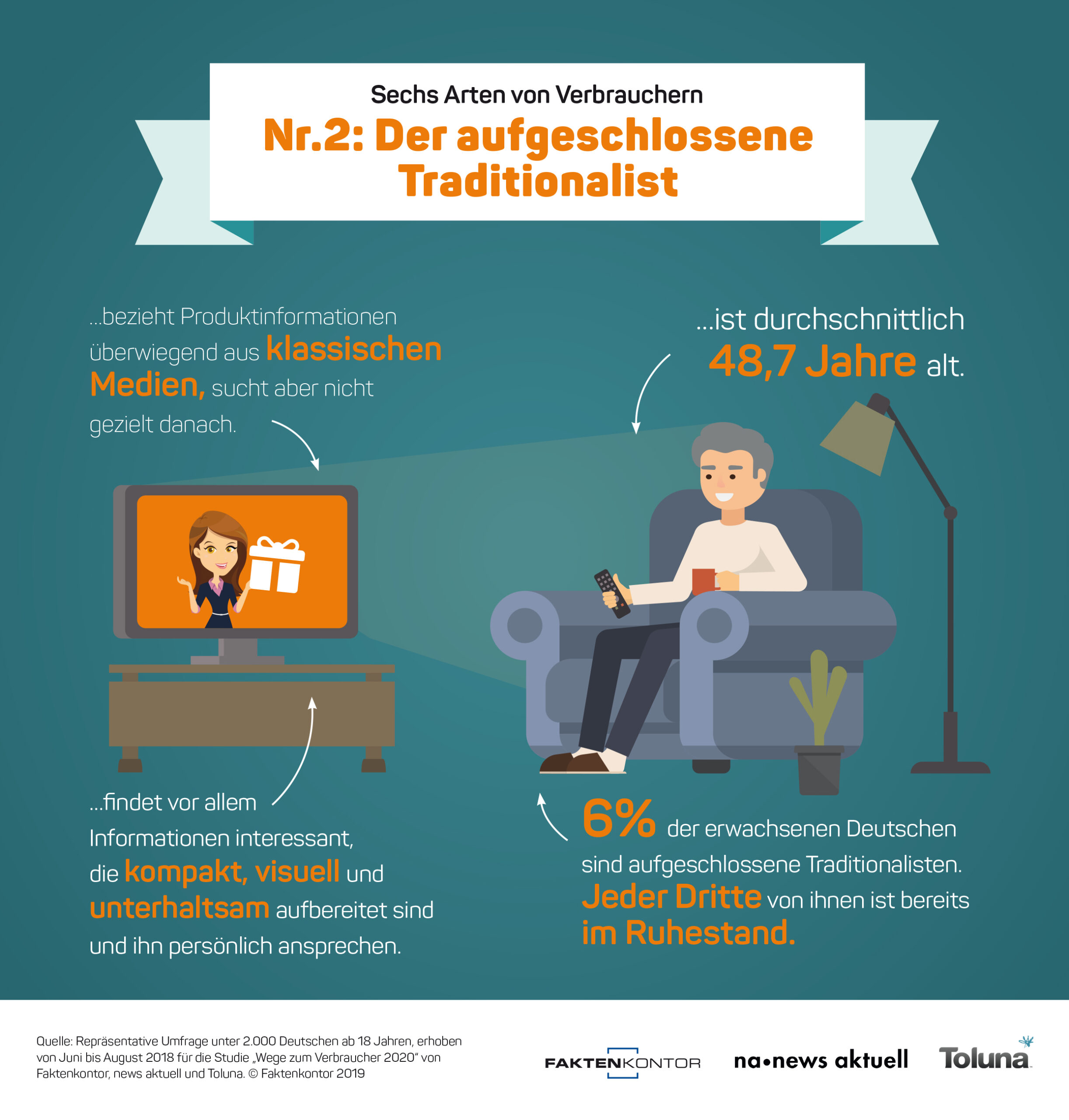 - Sechs Prozent der volljährigen Verbraucher entsprechen dem Typ aufgeschlossener Traditionalist.