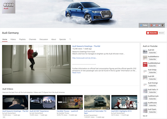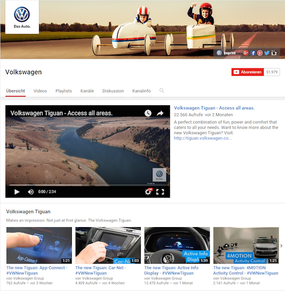 Volkswagen setzt bei der Kanalgestaltung als erster im Ranking ein Kanal-Logo ein, was entsprechend positive Effekte nach sich zieht. Trotzdem fehlen beliebte Videos auf dem Kanal und somit wird Potenzial verschenkt.