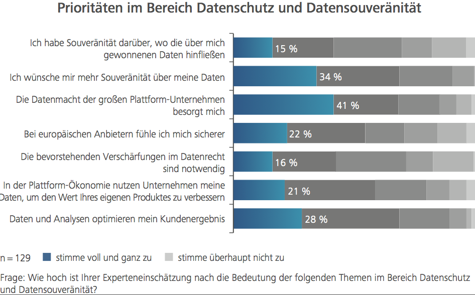 Die Unternehmen setzen auf die Nutzung und Erhebung eigener Daten (First Party-Daten). Ein logischer Schritt, zeigen sich doch 68% der Befragten besorgt über die Datenmacht der großen Plattformen. Der Willen zur Souveränität über die eigenen Daten (Data Ownership) spiegelt sich auch an anderer Stelle wider. So bleibt die Investitionsbereitschaft im Bereich Customer Intelligence und Analytics, laut Experten, auch in Zukunft hoch. Wobei insbesondere Geld für Inhousing von Analytics- Fähigkeiten und die dazugehörige Optimierung aufgewendet wird. Diese Investments haben einen nachvollziehbaren Grund – das Thema Data Ownership ist essentiell für Unternehmen zur Absicherung der eigenen Marktposition. HDM Professor Jürgen Seitz: „Ein wesentliches Ergebnis ist, dass die Kontrolle über diese eigenen Daten (Data Ownership) und der sorgsame Umgang mit diesen Daten als Mittel zur Generierung von Wettbewerbsvorteilen gesehen wird.“