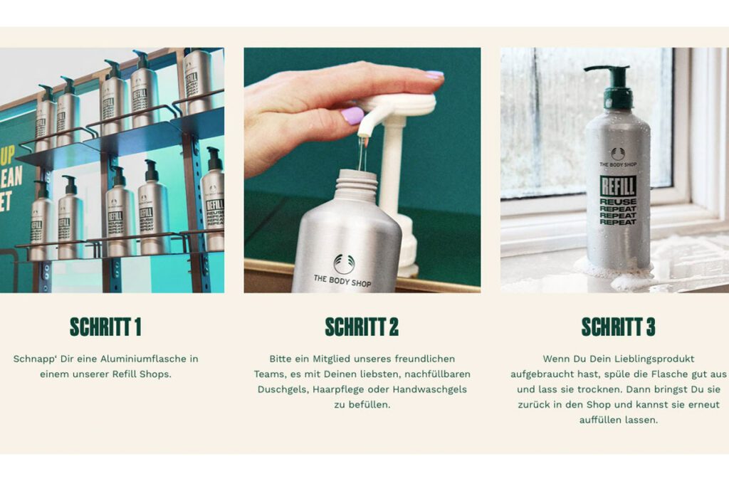 Die Kosmetik-Kette The Body Shop setzt sich nicht nur für tierversuchsfreie Kosmetik ein, sondern bietet ihren Kund*innen seit 2021 in ausgewählten Läden auch sogenannte „Refill Stationen“ für Produkte wie Shampoos und Seifen an. Das Unternehmen wirbt hier nicht nur für ein bewusstes nachhaltiges Leben, sondern führt auch Vorteile in Form von Kosteneinsparungen an: „Indem du Refill wählst, können wir gemeinsam mehr als 25 Tonnen Kunststoff einsparen. Refill ist aber nicht nur besser für unsere Erde, sondern auch für deinen Geldbeutel, denn du erhältst immer etwas mehr des Produkts in der Refill Flasche im Vergleich zu den normalen Verpackungen.“ Der Annahme, dass unverpackt immer teurer sein muss, wirkt das Unternehmen also entschieden entgegen.