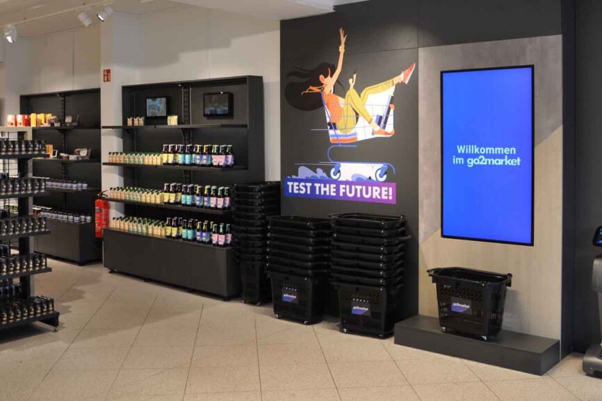 Auch an anderer Stelle setzt Go2Market auf technische Features, die in herkömmlichen Supermärkten bislang nur vereinzelt zum Einsatz kommen. „Wir bieten unseren Kunden ein Einkaufserlebnis, das alle Sinne anspricht“, unterstreicht Perdolt. So soll zum Beispiel ein eigens für Go2Market kreierter Duft dazu beitragen, dass sich die Kunden im Testsupermarkt wohlfühlen. Zudem geht an einigen Regalen die Beleuchtung erst an, wenn ein Kunde davorsteht. Ein Roboter gibt auf Wunsch nähere Auskunft zu den Produkten.