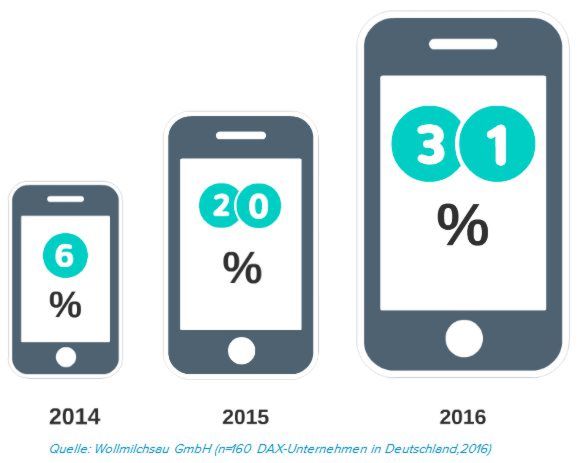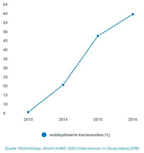 Im Fokus der Mobile Recruiting Studie 2016, die von der Wollmilchsau GmbH jährlich durchgeführt wird, stand die mobile Candidate Experience der Karriere-Webseiten der führenden deutschen Unternehmen. Heraus kam, ähnlich wie in den Jahren zuvor: Das Mobile Recruiting entwickelt sich in Deutschland zu langsam. Bedenkt man, dass mittlerweile 70 Prozent der Deutschen mobil surfen, ist das ein Armutszeugnis für das Personalmarketing.